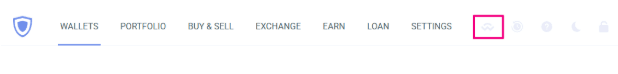 In the web version of Guarda, click on the WalletConnect section. You’ll find the button to open it near the Settings menu in the top bar of the app.